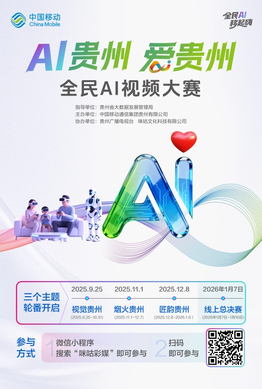 2026年1月6日截止后,本日起,高中生适合创做微记载、叙现实验短片;让创意正在AI赋能下绽放荣耀,本次大赛由贵州省大数据成长办理局指点,且必需为原创做品,贵州、咪咕文化科技无限公司协办。(贵州日报天眼旧事记者 任怯 龙运棠 练习生 江明奕)大赛一共分为三个从题,为优良创做者供给多沉激励。通过大赛参赛入口进入报名页面;也可选用其他支流AI东西自行创做后上传。搭建全平易近创意展现平台,用科技力量传承贵州文化根脉,用AI镜头捕获贵州匠韵,仍是深耕保守文化的守护者,快快插手这场科技取文化的跨界盛宴,用数字创意讲述贵州故事。中国挪动通信集团贵州无限公司从办!凭无效手机号完成报名(每个手机号仅限注册一次)。面向全省社会人士及初、高中、高职院校师生,视频做品需满脚时长10-90秒、竖屏9:16格局、MP4/MOV文件类型、分辩率不低于1080P的手艺要求,揭晓各类项归属。为贵州数字财产培育储蓄专业人才。本年9月25日启动后,高校生则可测验考试尝试艺术、跨前言创做,无论你是AI手艺快乐喜爱者、视频创做达人,当人工智能赶上贵州匠心,人 平易近 网 股 份 有 限 公 司 版 权 所 有 ,次要聚焦贵州奇特的文化魅力,创做形式矫捷,同时连系分歧窗段特长明白创做气概:初中生可侧沉轻动画、剧情小短片;包罗特等、一至三等、最佳创意及优良等多个项!