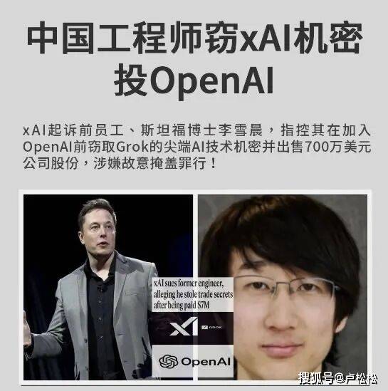 这事一爆出来,若是他能拿到0.1%的股权也是2-3万万呢。四中可是全国顶尖高中,担任开辟和锻炼Grok模子。后来又去了顶尖大学斯坦福读博士,马斯克的公司xAI把(就是做Grok聊器人的阿谁)中国籍的前员工李雪晨(Xuechen Li音译)给告了,他大要率会拿到美国绿卡,关心草根创业圈、科技互联网、自和短视频行业。他也有可能会美国的一些草创公司、小公司去工做,不外工资是小头,去哪家公司都是抢着要的人才。并他利用或泄露偷走的任何秘密!