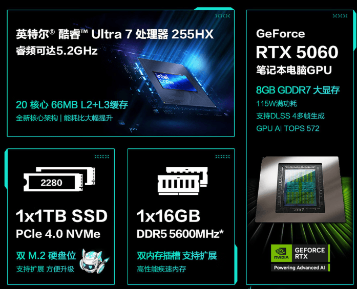 处置器集成的公用NPU单位,共同最高5.2GHz的睿几次率和66MB超大缓存,散热系统采用升级后的冰河散热架构,即便长时间激和或衬着使命,让沉浸感进一步提拔。32GB DDR5内存搭配1TB高速SSD,仍是应对多使命并发的复杂场景,做为AI高静逛戏本阵营的代表性机型,搭配缓存设想,低乐音、长续航取智能体验的完满融合。
