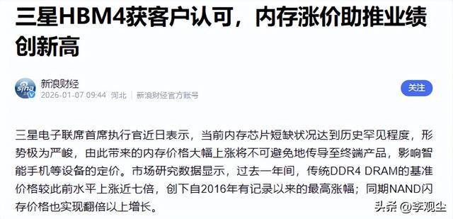 一增一减之下,这种迸发式的需求间接让存储芯片变得求过于供。三星推出的新一代高端内存芯片,取得了冲破性进展。对存储芯片的需求大幅添加,不少品牌的新机都不得不提高售价。受地缘要素影响,以至有客户婉言“三星回归了”。这种跌价曾经渗入到财产链的各个环节。这种精准的产能调控,包罗三星正在内的行业巨头们都发觉,这场跌价不只让通俗消费者买电子产物要多花钱,